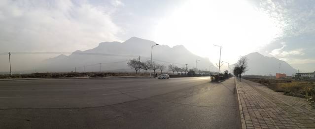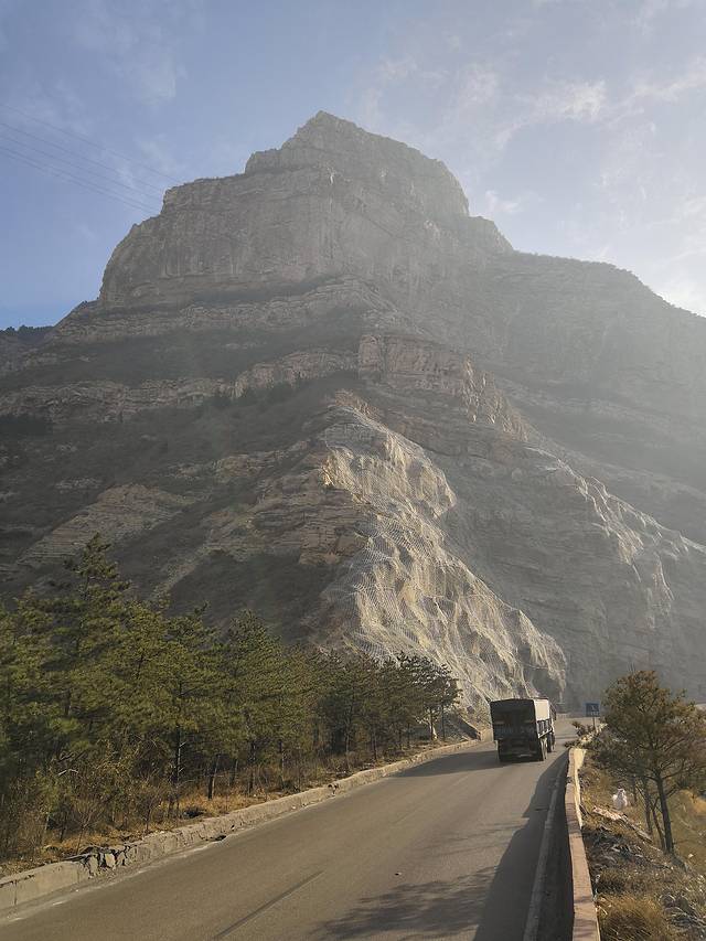 已经到了恒山的另一侧的山脚下两面环山中间一条不是很宽的公路