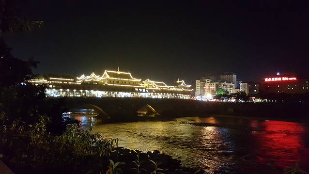 一层是步行街,两边是各种小商户。二层吃饭喝茶,脚下的青衣江缓缓流过。