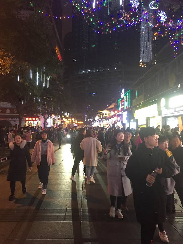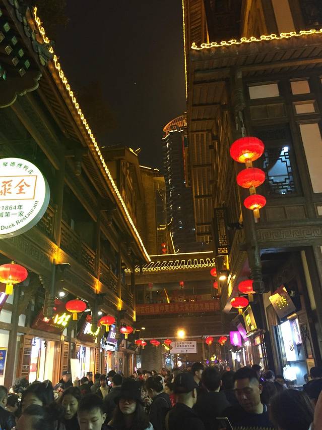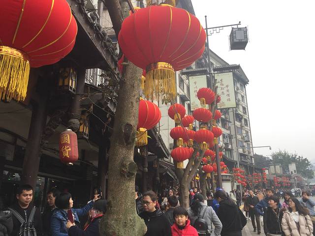 吃完饭散散步,重庆很有年味,到处都张灯结彩,挂着灯笼,点缀着这个山城。
