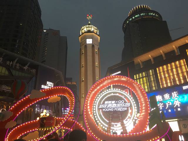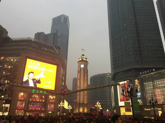 打卡重庆地标~远远就看到解放碑,很大的一个广场,四面八方都是步行街,很繁华的商圈,奢侈名牌、接地气的小吃应有尽有。晚上特别漂亮。不过人还是非常多!