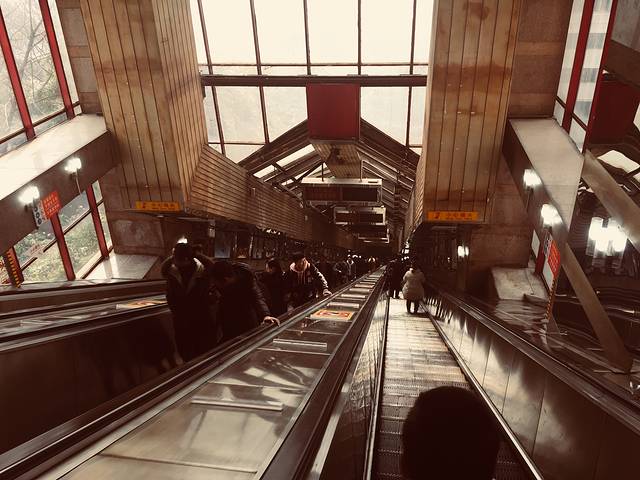 最后一天,下午五点多的高铁回去,我们12点退房,就安排了一个小行程结束重庆之旅。两路口的皇冠大扶梯。连接了两路口和重庆火车菜园坝站,是重庆特色交通之一。单程票价2元。我们坐了双程。