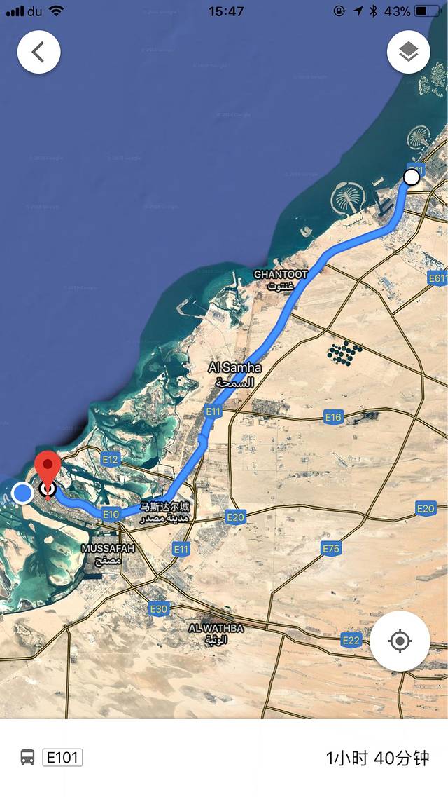 今天就要离开迪拜前往阿布扎比,从酒店出来坐上地铁,到达“六国城”站点,再坐E101大巴约1个半小时的车程直达阿布扎比的总站。