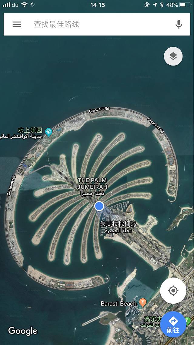 棕榈岛卫星图—纯人工岛(外圈的“半月”有20km)