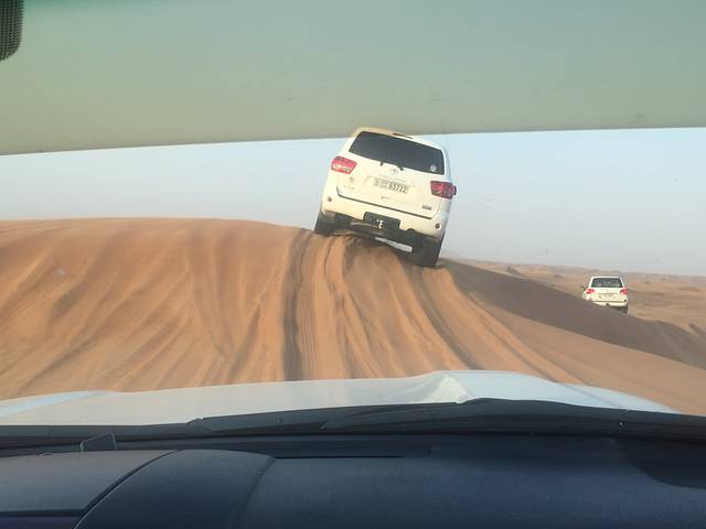 这些沙丘有的大有的小,特别是到大沙丘时反而油门越踩越大,眼看就要到顶端了,司机一个甩尾带着我们一起飞了起来......