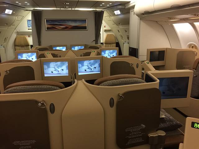 ETIHAD(阿提哈德)航空:中东三杰,总部位于阿联酋首都阿布扎比,执飞的是787-9,又称789,实实在在的豪华机型,内饰、空间都做到了极致。