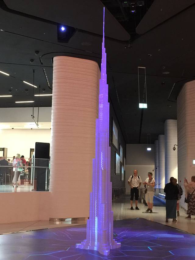 这座世界第一高楼矗立在沙漠上,就像一根笔直的针尖耸立在这片地上一样。我们登上了该塔的125F,电梯的速度使得耳朵👂隐隐作痛,登上高处便能俯瞰整个迪拜城,棕榈岛的奇迹,世界岛的宏伟,都使人赞叹不已,来迪拜必来哈利法塔。