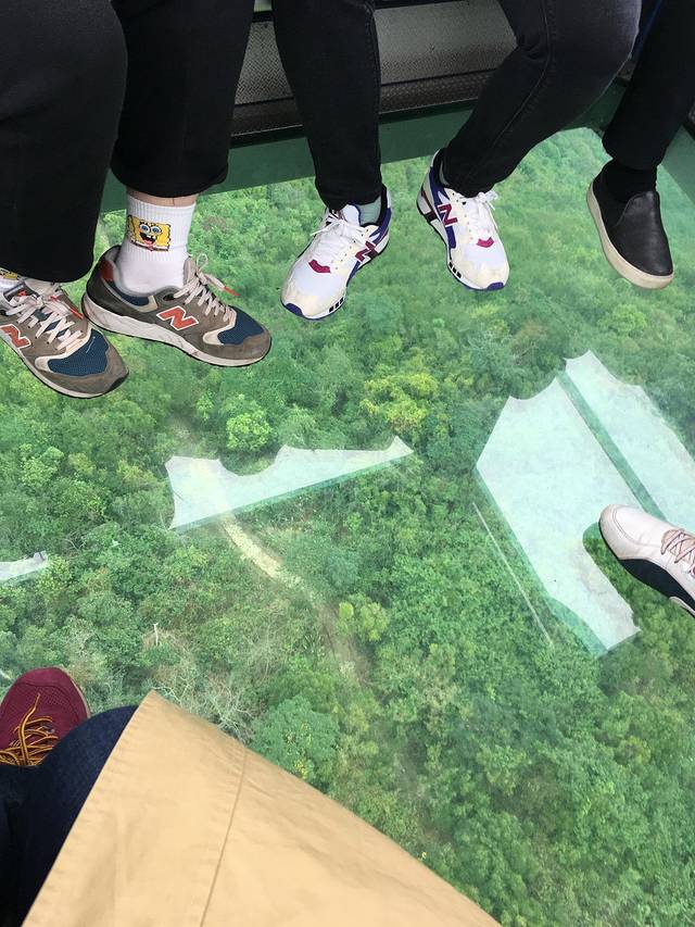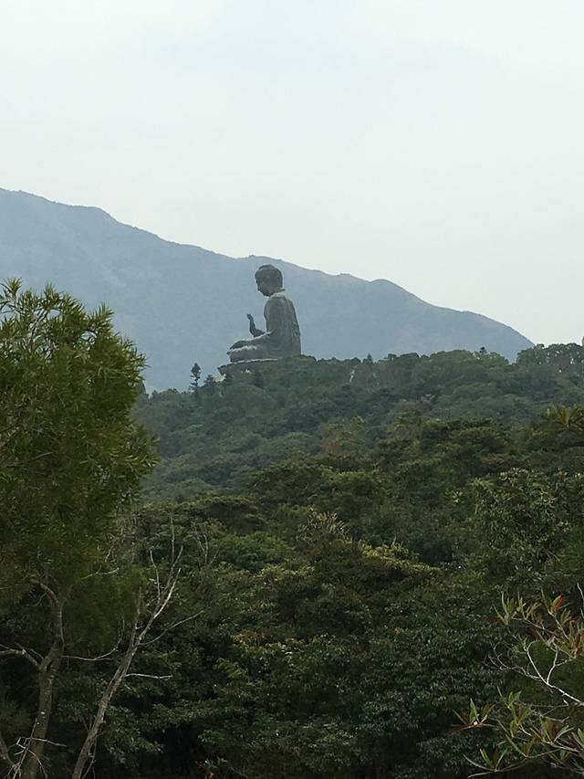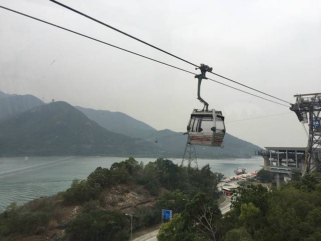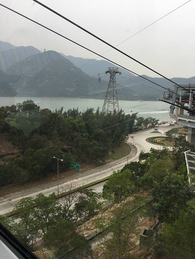 第二天(2月4日)一早,跟着导航找到E11大巴车站,准备去昂坪360缆车。路过一家惠康小超市,买了点面包酸奶做早餐。8点出发,9点多点就到了缆车站。缆车站离东涌地铁站很近。缆车是10点开始发车,直接上楼换票(事先在去哪儿预定的,水晶缆车190往返)。早上人好少,很快就换好票,还给了一个手环,就是返程的时候可以出示。然后就去坐缆车了。上车的时候工作人员会给每个人都拍一张照片。到站后会在服务中心看见你的照片被制成相框和水晶摆饰。然后卖给你。话说我坐的车上有六个人,三个韩国女士,两个欧美的老外。缆车启动,他们都拿着手机一顿拍啊,一个老外基本上是全程站在那儿拍。我请对面的韩国女生帮我按了两张。之前小玉发香港帖子的时候,我还说我这么恐高的人肯定不敢坐这个水晶缆车,因为不光四周,脚下也是全玻璃的,下面的山山水水树木森林全都看得一清二楚。记得当年去东方明珠的玻璃栈道时,就没敢踩上去。这次,居然有勇气自己一个人坐这个缆车,我也是服了自己。不过话说,真正坐上去,发现也没那么恐怖,景色真是好美,完全不一样的视角,不一样的美景,不去亲身体验真的是领略不到。