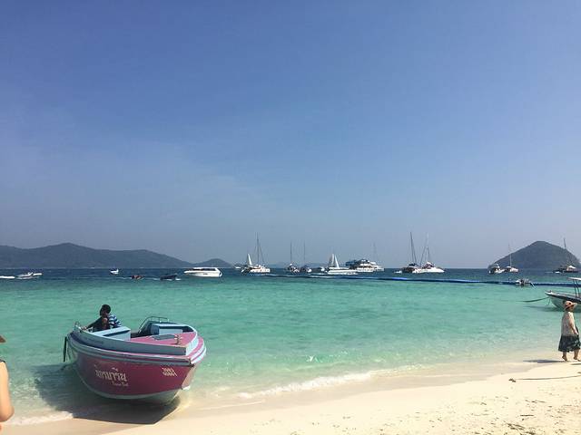 在芭东海滩的第三天,是我们皇帝岛、珊瑚岛一日游的日子。前一天我们在芭东海滩玩得正高兴的时候,一同前往的同事却收到了淘宝店家的邮件,说:海岛游人员已满,他们没报上名。这怎么可能呢?我们俩一周前前后脚买的,而且她比我先买,我都收到行程单了,怎么可能她没买成功,细问才知道:店家一直让她等待行程单,却一直没有发给她。现在又是旅游旺季,普吉岛有点招架不住这么多游客了,出现了爆仓。好在在同事的一再坚持之下,终于店家给协调了名额。所以,虽然在淘宝上定娱乐项目很划算,但是切记一定要记得及时跟店家要行程单。普吉周边离岛很多,自然环境保护得特别好,沙滩细白、海水澄清。我们本来想报斯米兰岛一日游,这个岛一年只开放3个月,虽说景色是最美的,但是路程却是最远的。所以我们最后报的是皇帝岛和珊瑚岛一日游,但海水沙滩仍然美的超乎我的想象。在海岛游的过程中,有免费的浮潜、午餐和BBQ等,在船上吹着海风,爱美的人儿再拍点美照,还是十分惬意的。至于船型,我们定的是双体帆船,虽然比不上快艇的速度,但是稳定性很好,不至于晕船,有小孩子还是比较适合的。