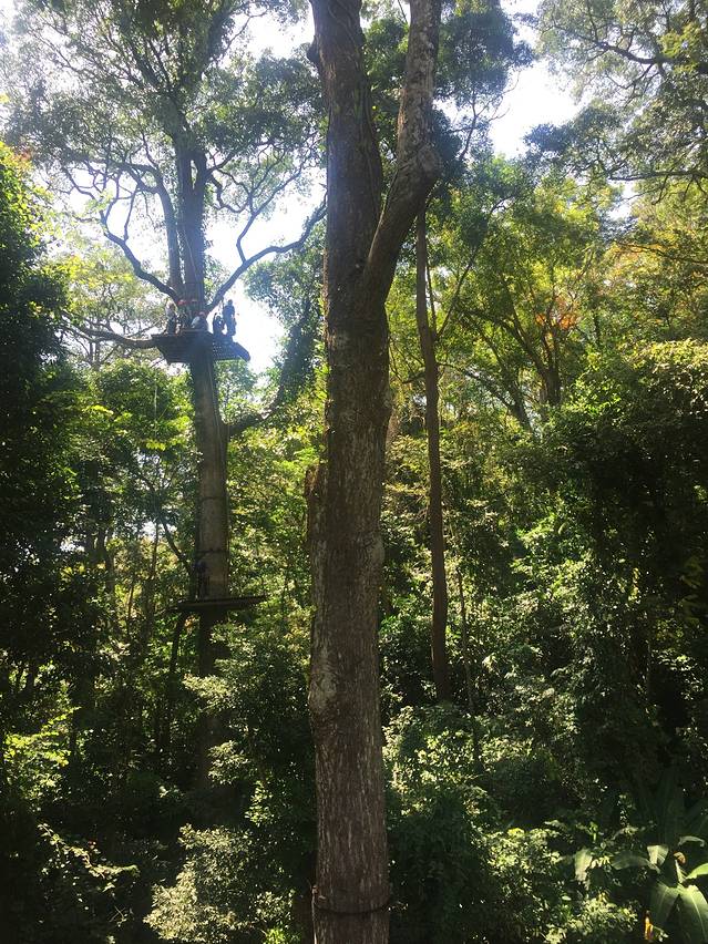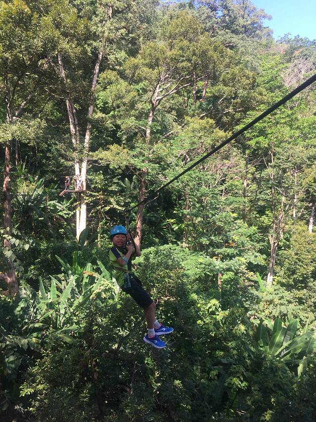 家有男孩的家庭一定要尝试一下丛林飞跃。我们提前两天在淘宝上预定了这个项目,当天在约定好的时间,司机开着小巴车来到酒店接我们。到了那儿以后,会有教练帮您穿上装备,把包放进保存柜,然后带你来到飞跃的起点,最好带一个贴身腰包之类的,把手机带身上,方便相互拍照,跟拍的照片需要花钱购买,很贵不划算。一路上每一个站台都会有教练帮你把保险绳挂好,有时还会摇绳制造刺激让你尖叫,总之这项运动很刺激,我家图图玩了16站以后还觉得不够过瘾,而我和他爸觉得已经双腿发软了。总之,根据具体情况选择吧,有16站、20站、30站的。