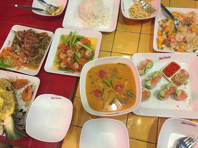 购物的最好地点当然是在芭东。这里有购物中心江西冷,而且沿街都是小商铺和饭馆,价格都不贵。江西冷地下一层有吃饭的地儿,在外面逛累了,可以躲到里面吃个饭,吹吹空调,再逛逛里面的小商品市场,买点手工小玩意儿还是不错的选择。海滩周边、沿街的餐馆各式餐饮都有,烧烤、中餐、西餐、泰餐等选自余地比较大,价格比北京便宜。具有泰国特色的菠萝饭和芒果饭最好不要错过。海边的大排档和夜市有各类烧烤,价格也都比国内便宜,鱼虾一份在100-150泰铢左右。路边很多水果摊,有切好的水果,芒果和菠萝、木瓜强烈推荐,特别甜。还有大杯的fruit shake,但是个人觉得不是纯水果制作,加了添加剂,所以有点甜腻。炒冰淇淋和banana pancake也一定要尝试一下,小孩子尤其喜欢。