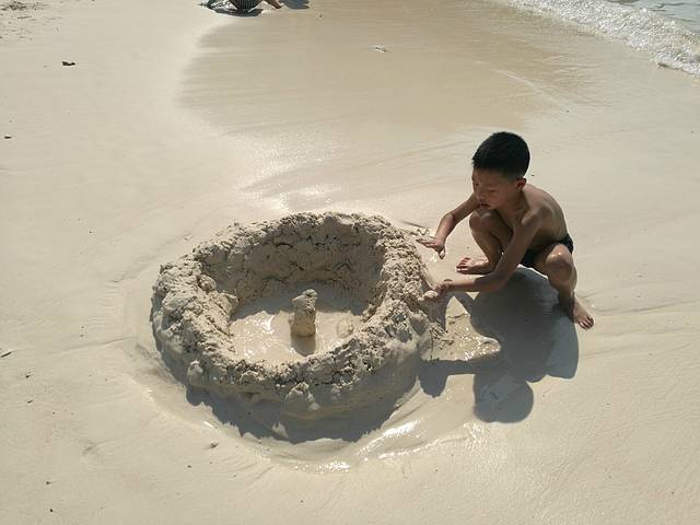 我们先住在芭东,所以先到的是芭东海滩。之前有人说芭东海滩比较脏,但是我觉得还挺好的呀,至少比我去的青岛石老人浴场干净多了!水很清,沙子也很软,孩子到了那儿就开始撒欢了,踏浪、堆沙堡,玩得不亦乐乎。再说说卡塔海滩,卡塔海滩反而没有那么干净,沙滩上有很多树上掉下来的小黑果子,但是不影响玩耍。卡伦海滩位于芭东和卡塔之间,海滩也很干净,沙子也很细软。芭东海滩最热闹,国人居多,卡塔和塔伦海滩有很多外国人,以俄罗斯人居多,国人相对比较少,也比较安静。总之,三个海滩各有特色,都值得一去。但务必做好防晒!