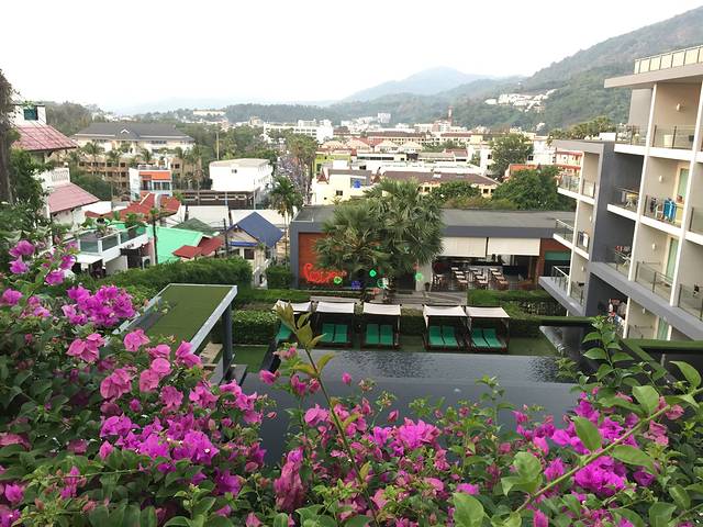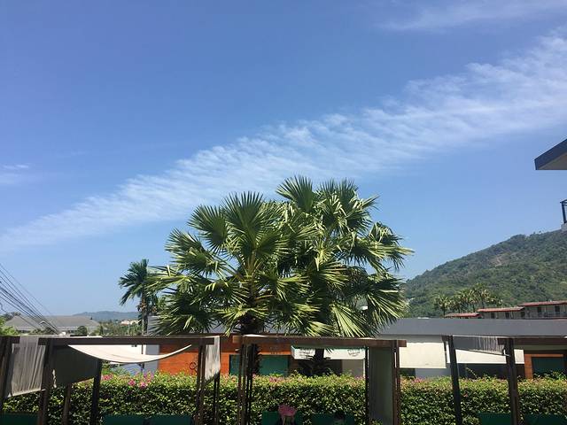 本次行程我共定了三家不同类型的酒店,想有一些不同的体验。第二家是民宿,名叫Villa Tona,我是在Airbnb上订的,住宿时间:3晚。这家我特别想向大家推荐。首先是地理位置好,它地处卡塔海滩和卡伦海滩之间,到任意一个海滩都只需要步行十来分钟。其次是主人很热情周到,我们到的当晚还给我们房间送了甜点、果盘和果汁。另外它房费便宜,我定的价格是217rmb一晚,含早餐,而且早餐是相当的丰富,很小资的感觉。我记录了一下,依次给我们上了咖啡、面包片加果酱、心形煎鸡蛋加肠、面条、蛋糕、果盘、茶、清水,每人一份,小碟子、小碗、小叉子、小勺子摆了一桌子。每天房间2瓶水,而且房东看我们出门,立刻给我们递上每人一瓶纯净水,所以在这的几天我们没有买过水喝。这里还有洗衣服务,只需要花50泰铢就可以洗一大桶衣物,便宜又方便。后来我们换第三家酒店的时候,房东还亲自送我们去的,只收了100泰铢,当然酒店距离也不远,泰国叫车麻烦且贵,房东能送我们去简直不要太方便!但是房东不会中文,需要你会英语沟通。