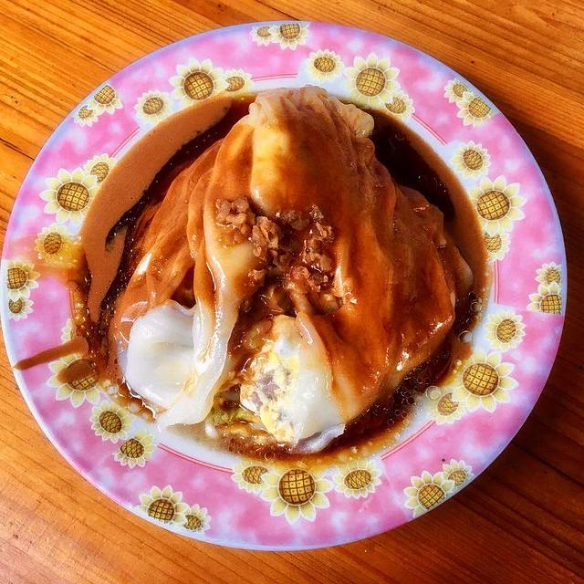 因为还没吃早饭,所以一进去就选了一家店吃肠粉。肠粉有牛肉、猪肉、鲜虾三种,一份12元,分量还蛮足的。本来还想点碗汤喝,但店主说太早了还没煮(其实已经9:00了)。和我在别的地方吃到的肠粉味道还是很不一样,肠粉里面裹着鸡蛋、肉还有金针菇,上面浇着一层芝麻酱,一口下去,完美地满足了味蕾与空腹。果然,美好的一天从一碗肠粉开始。