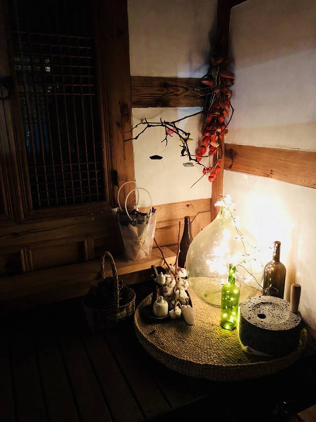 回明洞山之家check in的路上,偶遇一家看上去还不错的参鸡汤店,我们就进去了,鸡很嫩,味道一般,不过送了我们一壶参味的酒,可以说是很难喝了,海鲜饼还不错。