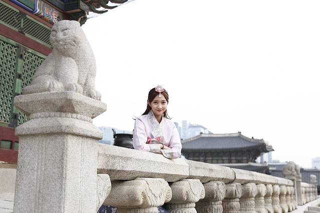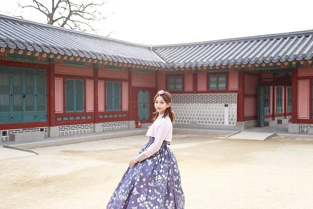 景福宫外围也可以拍拍照,我们就是选衣服太久,做头发太久,外围拍了太久,下午4点01分到景福宫门口的时候,就不让两个男生进去了,因为关门了,而我们穿了韩服就可以免费进去,在软磨硬泡以及一个在韩国生活的中国人的帮助下,我们还是一起进去啦~这个时间点大家注意一下。