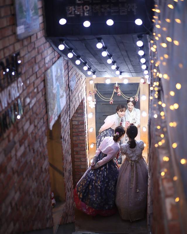 办理完check in,我们去租韩服了,我觉得我们两套是最好看的了。