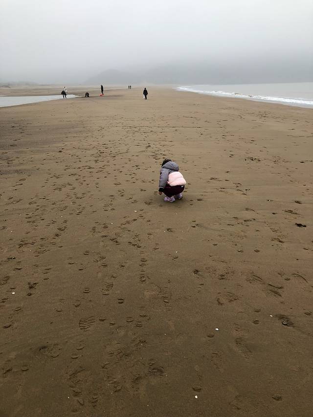 大年初三,早八点起床,洗漱好,吃完早点,定好舟山朱家尖,发现有两条路,一条近,一条远60公里,但可以过杭州湾跨海大桥。决定多走60公里。就当看大桥了。外面下着好大的雨。匀速100。十一点上了杭州湾跨海大桥,赞叹中国工程的伟大,跑一半发现前面有个海天一色景点,进去看下。停车费20元每小时,平台票50每人,下好大雨,没有能见度,加上我们又要去看真正大海,没上去。上个厕所,继续上路。中午在宁波服务区随便吃了点,顺便给把导航地点设置为朱家尖。下午两点到达舟山朱家尖,路上去普陀山风景名胜区的人很多。导到山顶,看到底下的海滩,好漂亮。但不知这是哪,门边上的人,说是南沙滩。导航过去,两边拉客的人特别多,直接忽略。停到停车场,10元一整天,无人看管,旅游配套还是不到位,买好门票,淡季20每人,很便宜,进去还有个国际沙雕展,一般。进入海滩,一家三口很喜欢。带宝宝去过很多地方,这是宝宝最喜欢的地方。玩了三个小时。下了一路雨,到景点就晴了,天气很给力。天黑了,用去哪儿找宾馆,好评高的小胖客栈看中了,电话定好260元。这个季节的住宿真的好贵。去宾馆,就是小区里,房间一般,但老板人真的不错,宝宝很喜欢老板娘。和老板打听好吃的。必东港还可以。打开美团看好评,选中老同学一号店,三个人三百块,又贵又不好吃。吃完去了保利剧院停车,海边逛了下,能见度得差,看了下回宾馆。这天玩的很开心。