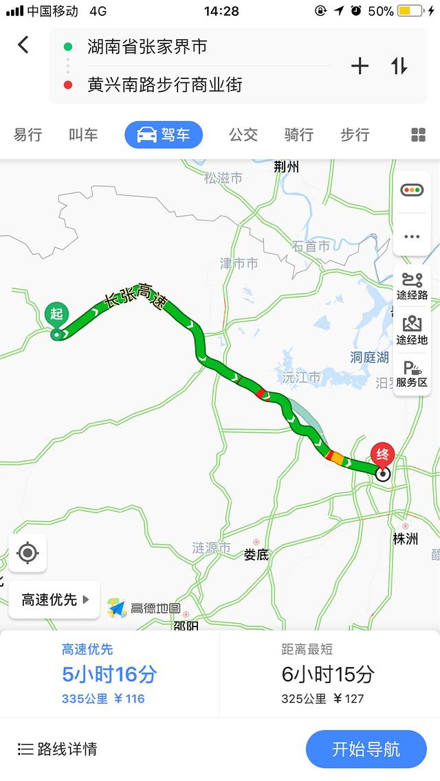 今天的行程就是开车去往长沙的黄兴步行街。导航上显示是300多公里,要5个多小时,实际要更久一点。