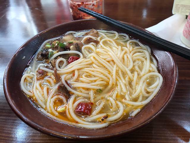 我们放好行李之后就来到客栈楼下吃个米粉,这种米粉好吃,但是配料好咸。