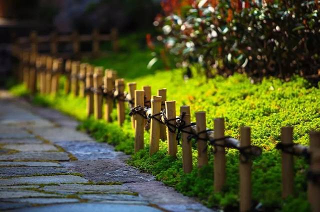 比如会呼吸的茅草屋顶、天然朴拙的竹篱笆、鲜活疏朗的苔藓……拈花湾的每一片瓦、每一块石头、每一面土墙,都是我们怀着对自然的敬畏之心而打造。