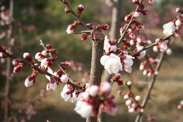 北京鹫峰国家森林公园梅园是我区面积最大,品种最多的梅园,目前已成功植栽了杏梅系、真梅系、樱李梅系的近百种3000多棵梅花供游人观赏。室外的梅花需要到3月中下旬才能逐渐开放,到4月份将达到盛花期。