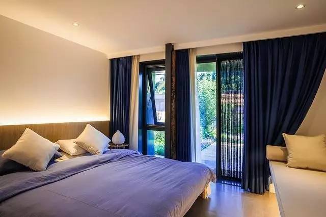 这里每个空间都有方便开启的窗户,阳光洒进来,无意间吹入的徐徐清风。让空气自然流淌 吐故纳新。老房子座落在苍青翠绿的幽岚山下的村庄里,进入民宿空间里,院落墙头的绿植和缤纷的彩色花卉,随意摆放的几张桌凳,一面半透明落地玻璃,老宅变身成绿意盎然的小庭院。