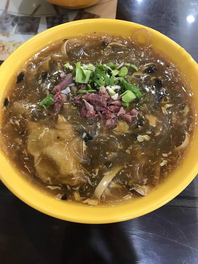 毛华美食的酸辣汤,跟在北方吃的口味不一样,这里面有粉条、香菇、牛肉粒、百叶丝,值得一吃