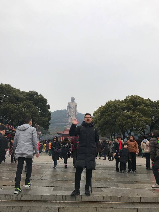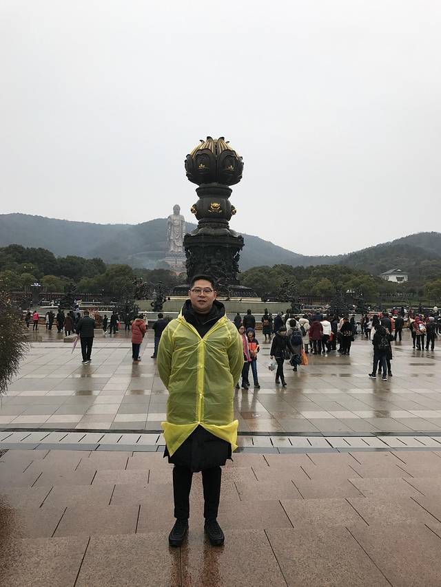 原计划7点起床8点出门,哪知道一睡过头,8点40才出发,乘坐1号线到梅花寺总站下车,换乘89路直达灵山大佛,因为是中途上车,就没指望过有座位。抓紧刷身份证进景点,很不巧刚进景点,下了一阵雨,好在事先有准备,自带了一次性雨衣。