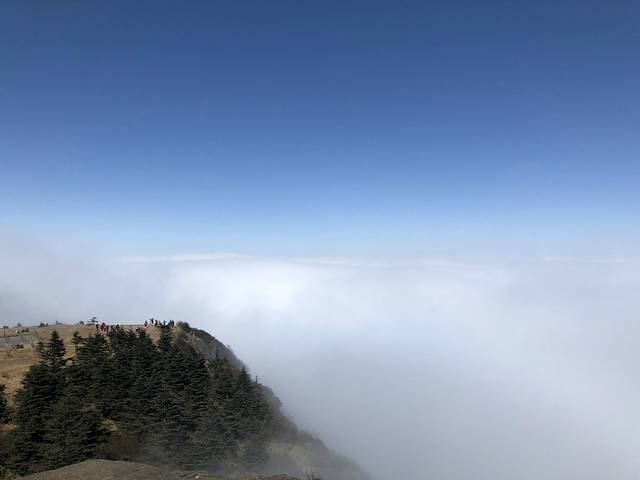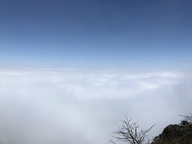 正当我们在云雾中,举步维艰,上气不接下气时,眼前出现了一抹久违的蓝色,顿时让我们精神倍增