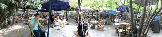 疲惫的我们坐着旅游巴士回到酒店后,稍作休息,出去觅食。(我们住的梦想家酒店,离报国寺的游客中心非常近,而且背后还有洗温泉的地方)