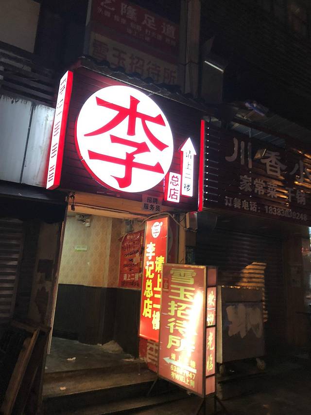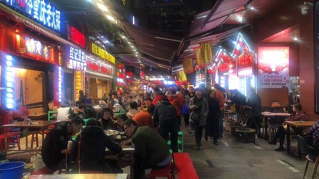 美食过后,天色已经很晚,已来不及去一棵树了。闲来无事,我们按照刚才快车司机的指引,去寻找刚才他所提到的烧鸡店。我们从李记串串香出门右拐,沿着楼侧的马路向后走去,发现在这楼群里,有很多苍蝇小馆,聚集着当地人在此用餐。想必一定是都有每个店的独到之处吧!