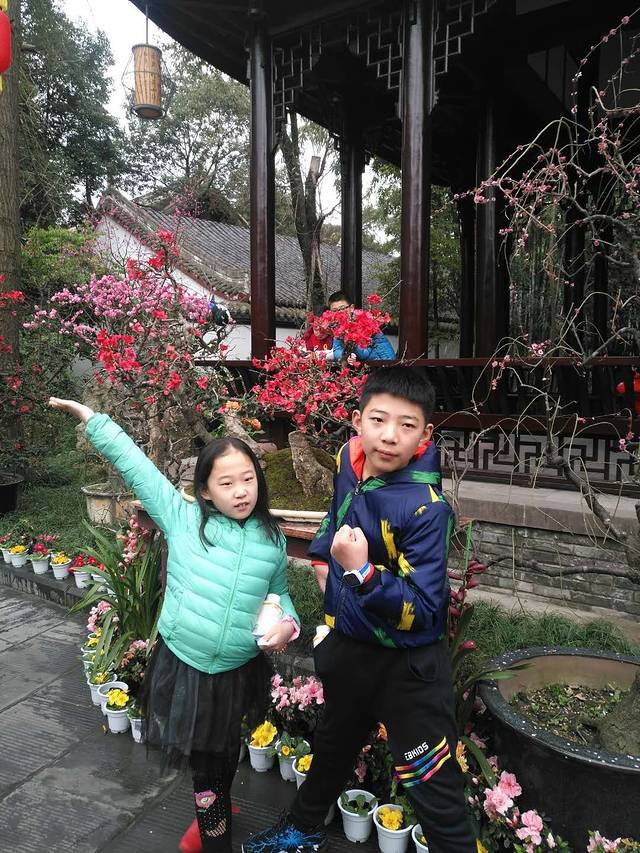 他们利用上午的空余时间去了杜甫草堂。今天是初七,大部分人都已回到工作岗位上,游人已锐减。在这里我借助他们的美照来简单介绍一下杜甫草堂,同时也分享一下他们的快乐😊