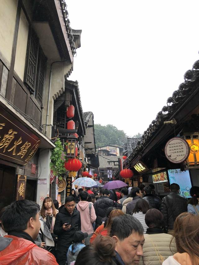 磁器口古镇,人头串动,保留着旧时的建筑。这里繁华依旧,似乎让人想到当年就是这样一个码头,从早到晚,过往商旅川流不息。当年流传一首民谣:"白日里千人拱手,入夜后万盏明灯。""千人拱手是形容每天都来上千只船上的船公划着船向码头停靠。""万盏明灯"是指形容码头上商贾云集,入夜后各自点亮油壶、电石灯、汽灯,经江水一漾,亮光炅炅,如星辰闪烁。