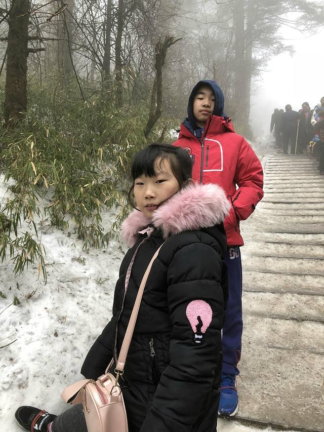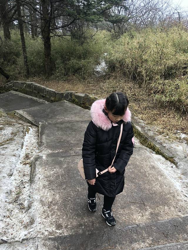 我们的这个小美妹也是很厉害的。早在刚过接引殿时,孩子就说有些恶心、走不动了,还掉了几颗金豆豆,但依然坚持登上了金顶。过后想见,可能还是海拔有些高,晚上没休息好的缘故。