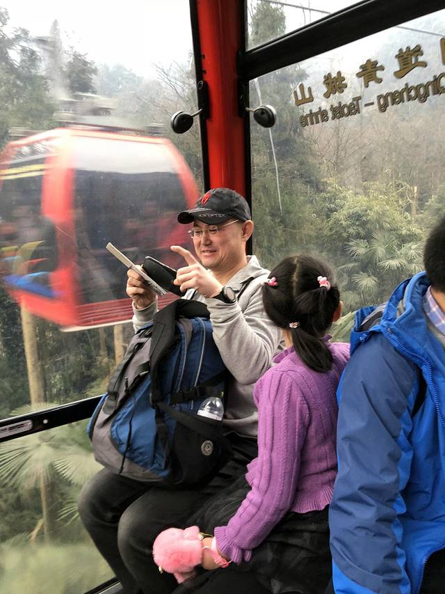 在下山时,考虑到石阶上的湿滑,比较危险,我们选择了坐缆车。