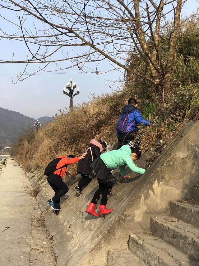 我们一面借助于防滑工具,一面互相搀扶并拉住护栏,心有余悸地迈着缓慢而又艰难的步子向上走。尽管举步维艰,可我们不畏艰险,坚持不懈地向上攀登