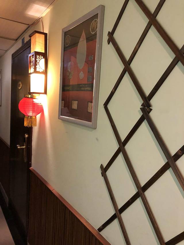 很不起眼的门面,顺着楼梯上去,灯泡昏暗,没有一点饭店的感觉。