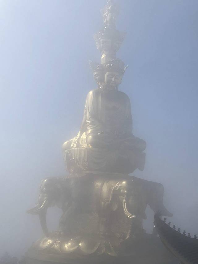 刚刚还是晴空万里,在短短的几分钟,金佛就被笼罩在大雾之中了