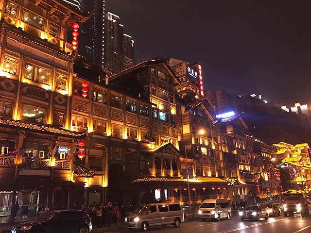 晚上就去了洪崖洞,实不相瞒网上说洪崖洞很美都是真的 ,夜色中的洪崖洞,现实中的千与千寻,那真的是太美了。楼宇间有很多美食可以品尝,江边有一些渔船酒吧,能听到歌声,伴随着洪崖洞夜景如痴如醉。