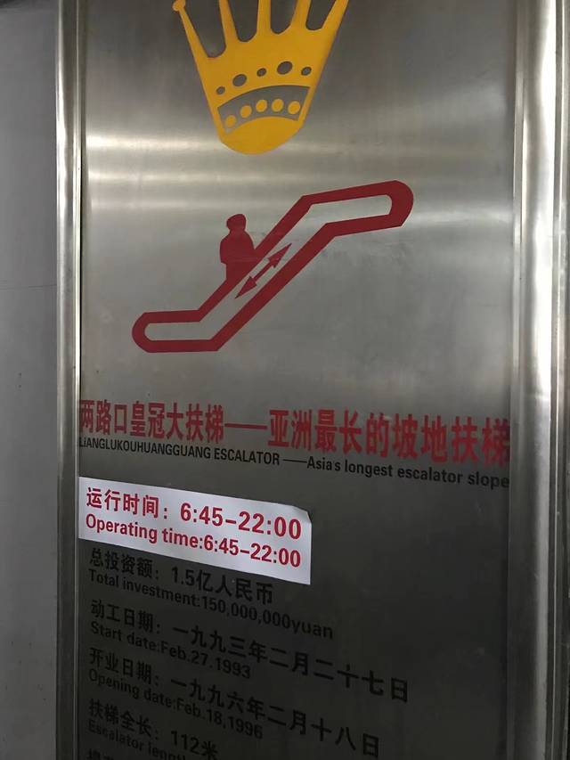 当天还去了皇冠大扶梯,就是那个传说中亚洲最长的扶梯,有112米长,不过做一次要收两块钱,额,说实话其实跟普通的电梯没什么太大差别,不过既然来到重庆还是要来见见世面的。