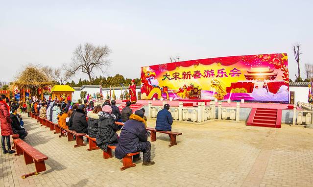正当目不暇接的观赏着花灯的时候,突然一阵欢快的音乐声从不远处响起,正当老鹰好奇的时候,身边的一名景区巡逻人员善意的提示:“《大宋新春游乐会》表演节目开始了,就在龙亭大殿后面,你快去看吧。”