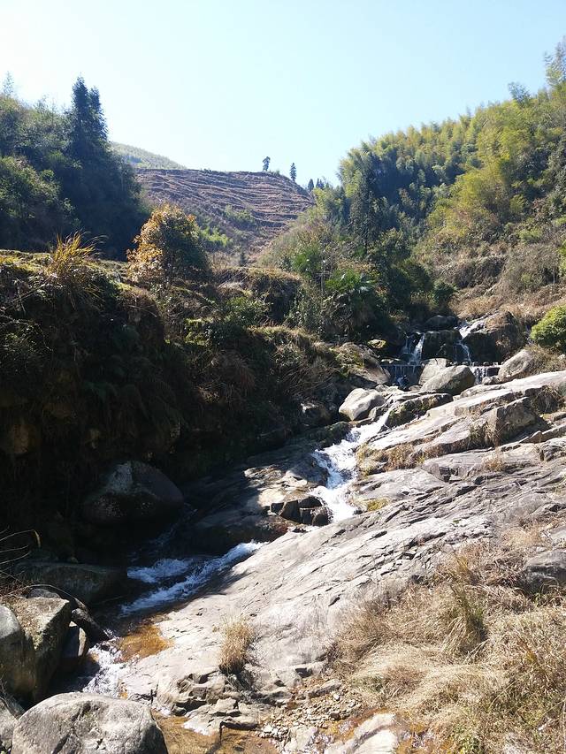 也算天公作美,这算是假期里天气最好的一天了。有人说,看云和梯田是好是有雾的时候,那时的云和梯田最美。不过,我们去的季节不对,所以我个人觉得还好是有蓝天白云,不然在没有水、没有作物的云和梯田,估计更不好看了。