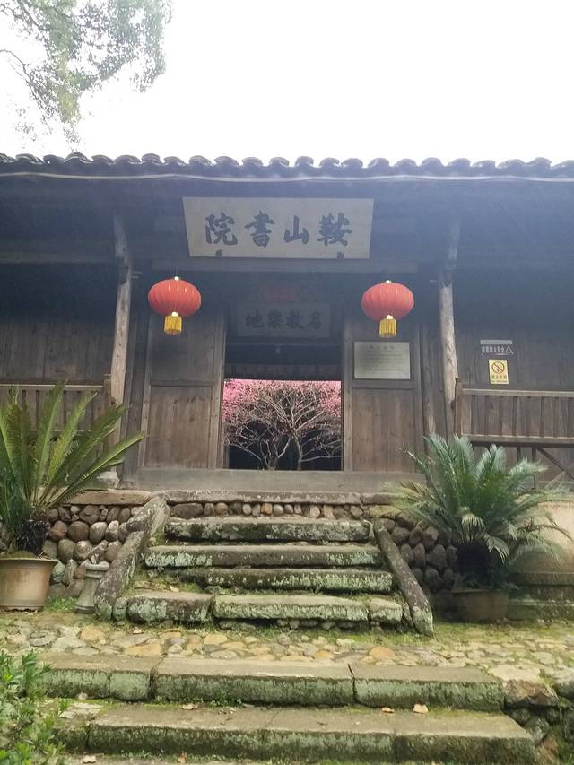 从小路拾级而上,突然出现的书院和书院的梅花简直让人眼着一亮。实在是这梅花开得太好,颜色又明亮,像是把你的心烫了一点,点燃了你的眼。书院是哪里都有,但是这一抹粉色实在增色不少。好像一碟开胃小菜,让你看大景大绿油腻的时候清清眼。