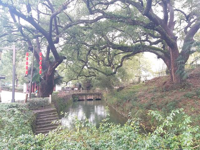 走到尽头开始折返,坐景区游船到对面的景点。主要是看看通济堰。这边往对岸看,风景没有那么美。也是适合走走停停拍拍。那里的香樟树实在令人叹为观止,守护在村落小河两旁的香樟树,树龄都在1000-1500年,特别粗壮。