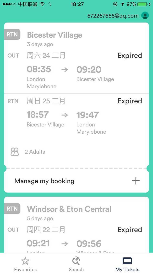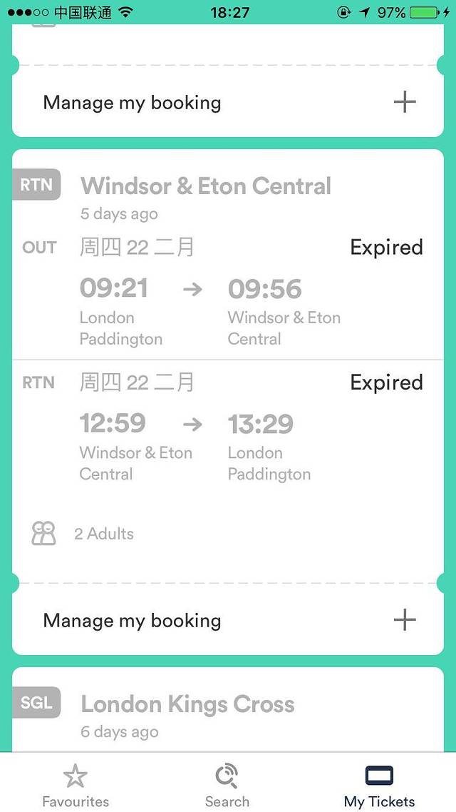 帕丁顿-温莎【往返】:23.65(单独结账)