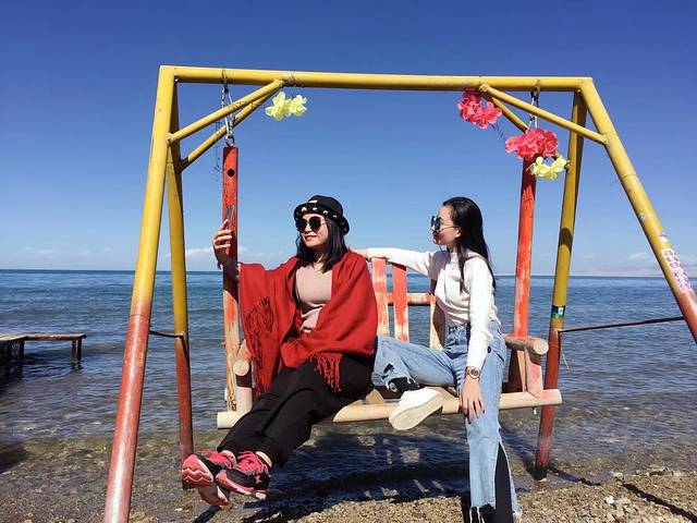 青海湖 门票80元 湖边有很多小羊可以合照 5元一次