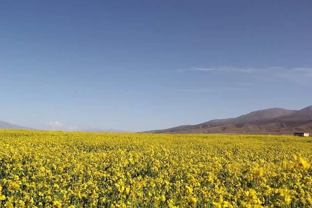 回西宁的路上徒遇一片油菜花地 于是就下来玩一玩 下来发现旅客也是超多的 趁没人的时候来个全景
