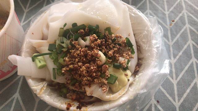 这是另一个村子里卖的,10元一份,里面有肉酱,粉皮冒了一下,是热的。