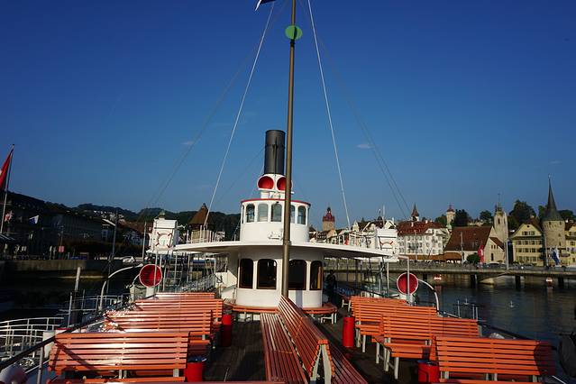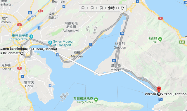 Luzern Bahnhofquai 在渡轮码头乘船去 Vitznau 在这里可以坐登山的小火车,到Rigi山,下山可以从Weggis返回。船的路线一般搜不到,所以去码头问问就行了~~Google 只发现了陆路的方式~~