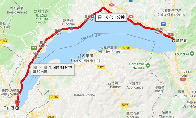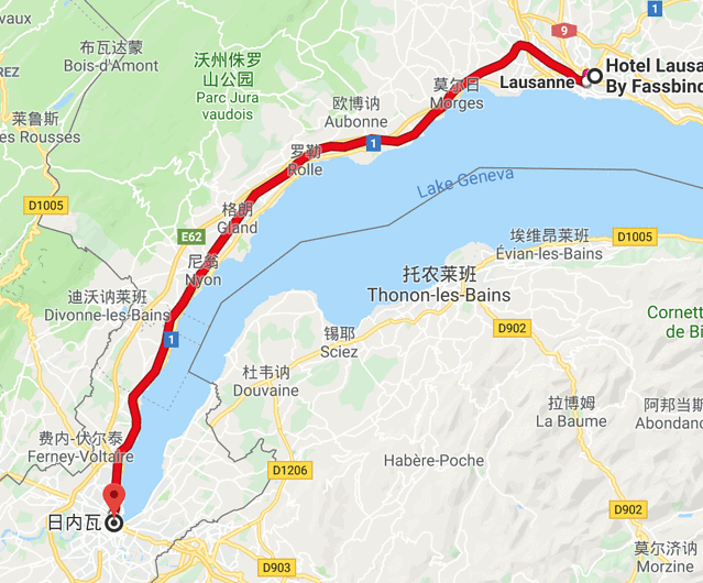 Lausanne to Morges (Tolochenaz) to Nyon (Yvoire) to Geneva